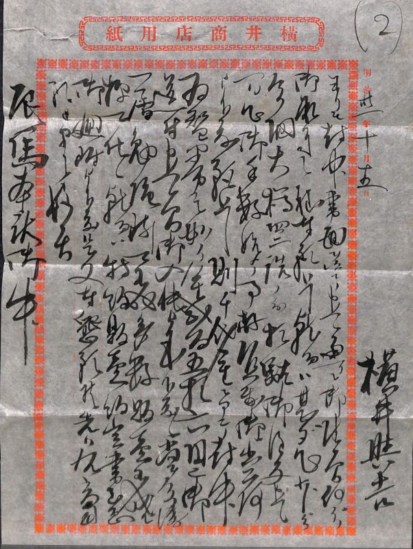 ここで紹介する史料は、97の特約店のひとつであった青森県大町(現在の弘前市)の横井與吉との特約契約開始時の様子がわかる書簡です。横井は青森で酒の小売店を営んでおり、当初青森の佐野が特約店契約に名乗りを上げましたが、佐野は主にびん詰め業を主としているため、親友である横井が改めて白鹿を青森で一手に販売する特約店契約に名乗りを上げた、という経緯が記されています。そして、早速手始めに10駄(=20樽)を送るよう依頼し、代金である256円分の為替まで同封して、特約販売約定書を送るよう依頼しています。この書簡からは、横井が白鹿との特約店契約を強く希望していることがわかります。横井のような事例が重なって、昭和初期にかけて東京から地方への販売網が広がったものと考えられます。尚、この横井との取引は、昭和7年(1932)まで続いていたことが確認できます。